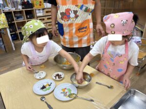 材料を混ぜたり、形を整えたりと、子供達は一つひとつの工程を楽しみながら取り組んでいました。