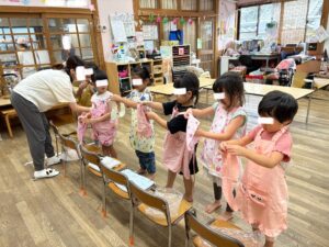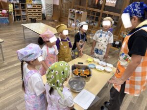 ゆりぐみときくぐみの子供達がクッキング活動を行いました。