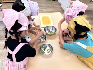 自分達で育てた食材を使って調理することで、食への関心や感謝の気持ちが育まれる、貴重な食育の時間となりました。