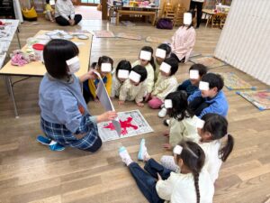 今年最初の絵画教室では、もうすぐやってくる「節分」にちなんで、先生から節分のお話を聞いたあと、みんなで“おにの版画”に挑戦しました。