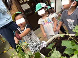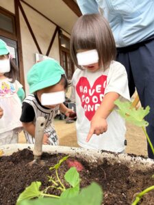 小さなプランターでも、こんなに立派なおいもができて、皆のがんばりが実りました。土に触れたり、育てる楽しさを感じながら、食べ物への興味もぐんぐん育っています。
